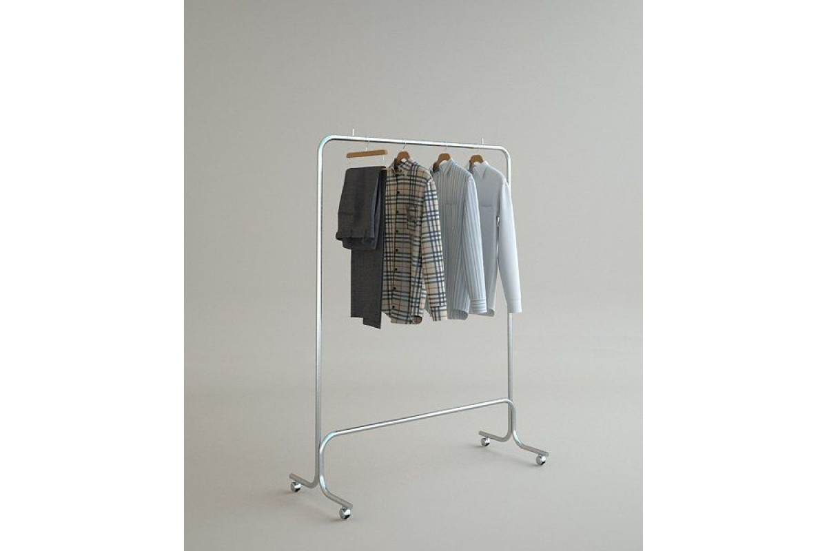 Вешало для одежды напольное одинарное, очень удобно как для магазинов одежды, площадь которых невелика, так и для больших торговых центров. Колеса дают возможность с легкостью передвигать вешало с товаром без особых усилий.