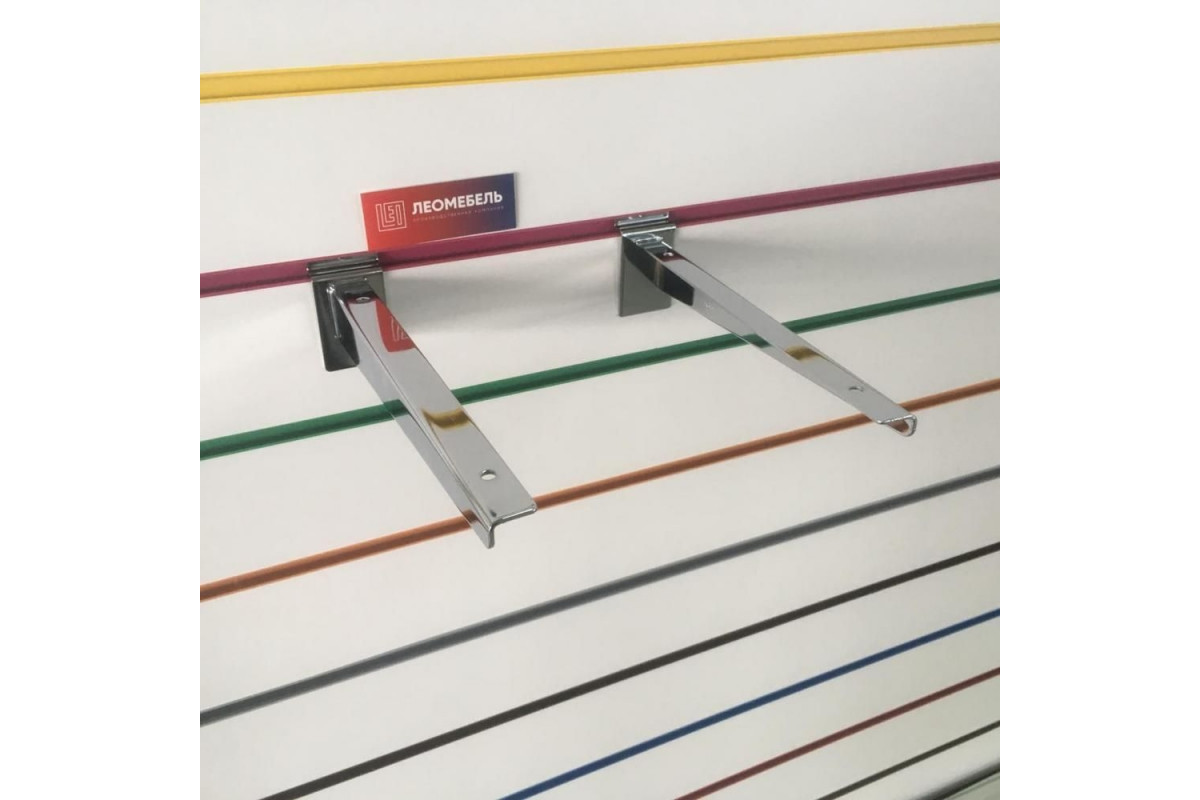Комплект состоит из двух кроштейнов (левый и правый) для полки под ДСП или стекло. Предназначены для крепления на экономпанель