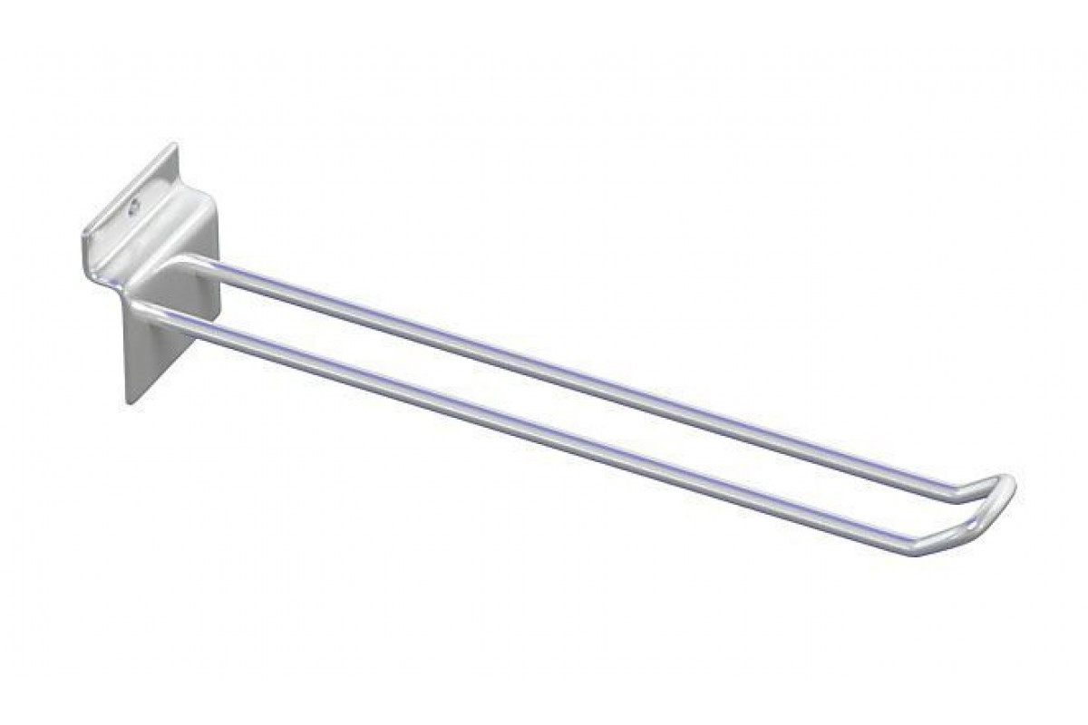 Еврокрючок хромированный. Еврокрючки предназначены практически для всех видов товара: это могут быть различные аксессуары, техники, одежда, инструменты. Данный вида крючков очень прочный и выдерживает серьезные нагрузки. Представляет собой изогнутый кв