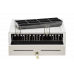 Корпус АТОЛ CD-410 выполнен из металла. В денежном ящике 5 отделений для купюр, 8 ячеек для монет и большое отделение для хранения чеков и счетов. Конструкция денежного ящика позволяет менять ширину отделений для купюр, а отделение для монет может выниматься из денежного ящика. Стальные зажимы для купюр долговечны и надежно фиксируют банкноты.