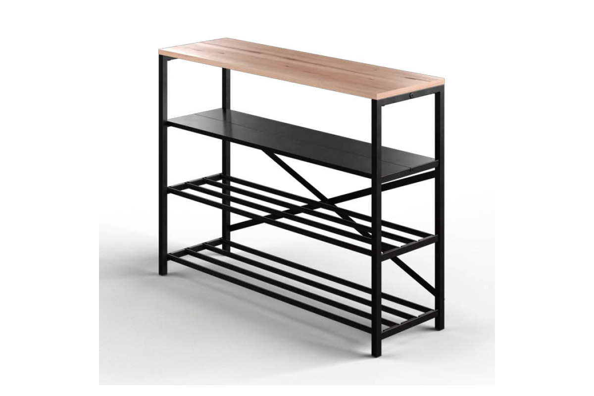 Обувница GUTTA 71х92х29 см, четыре полки — это стильное и функциональное решение для хранения обуви в стиле лофт. Каркас выполнен из качественной конструкционной холоднокатаной стали марки 08пс, что обеспечивает высокую прочность и долговечность изделия. Металлические детали покрыты порошковой краской черного цвета, которая защищает их от коррозии и придает обувнице элегантный внешний вид.