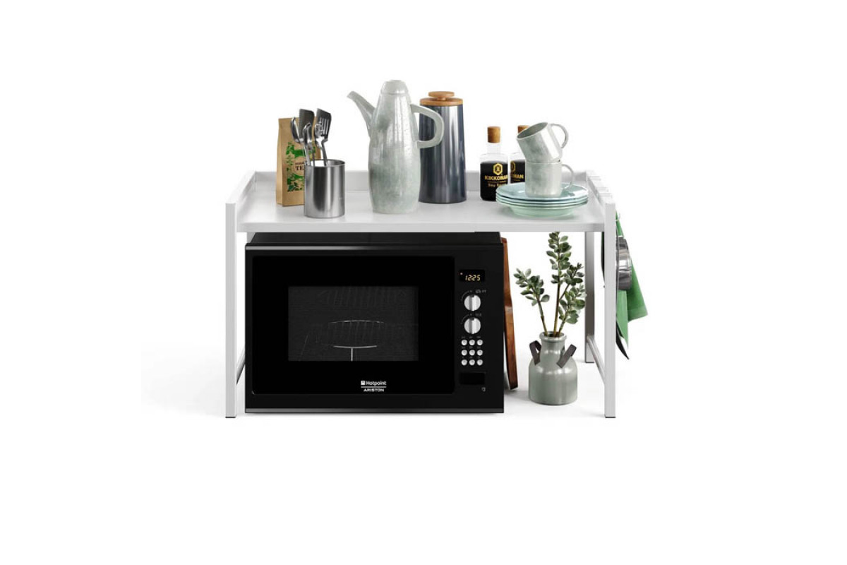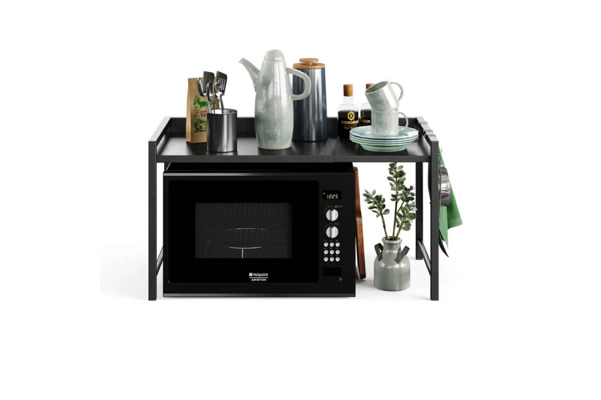 Этот стеллаж будет идеальным вариантом для размещения его над микроволновкой, чтобы решить проблему захламления поверхности микроволновки. На нем можно удобно разместить специи, чашки, тарелки и другие кухонные принадлежности, которые часто используются в быту. Также он может служить местом для хранения книг, журналов или декоративных элементов в гостиной или спальне.