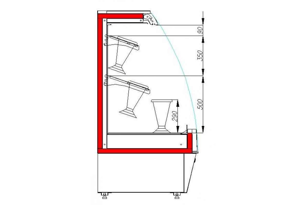 - остекление витрины с трех сторон – фронтальное подъемное стекло и боковины со встроенными прозрачными стеклопакетами;