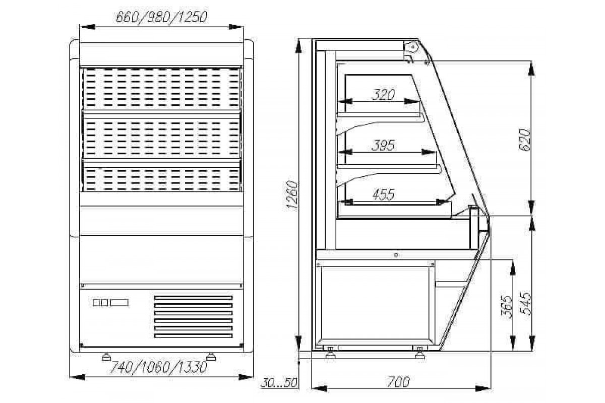 Холодильная горка гастрономическая Carboma F13-07 VM 0,7-2 (Carboma 1260/700 ВХСп-0,7, индивидуальное исполнение)