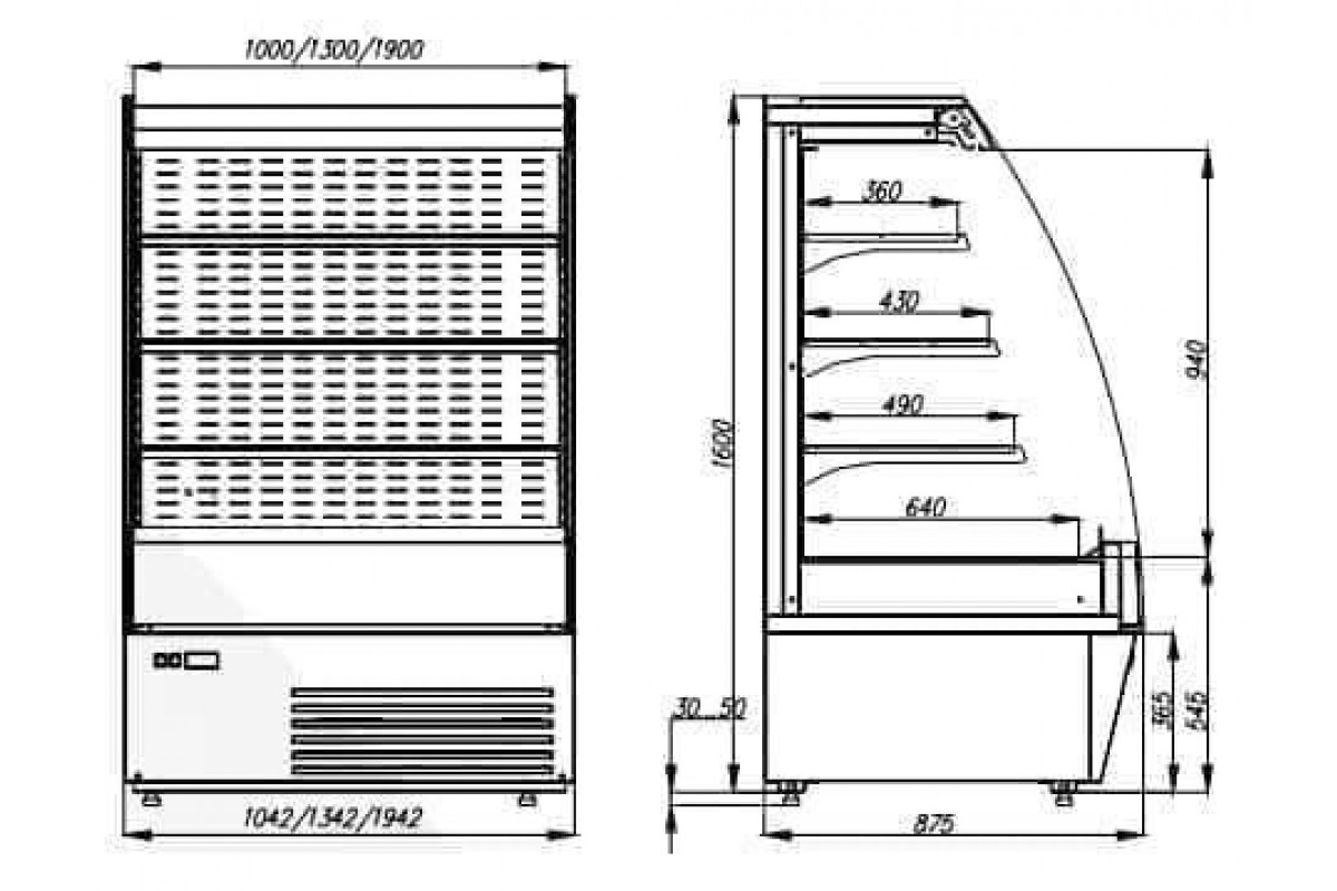 Холодильная горка гастрономическая Carboma F16-08 VM 1,9-2 0020 стеклопакет (Carboma 1600/875 ВХСп-1,9, индивидуальное исполнение)