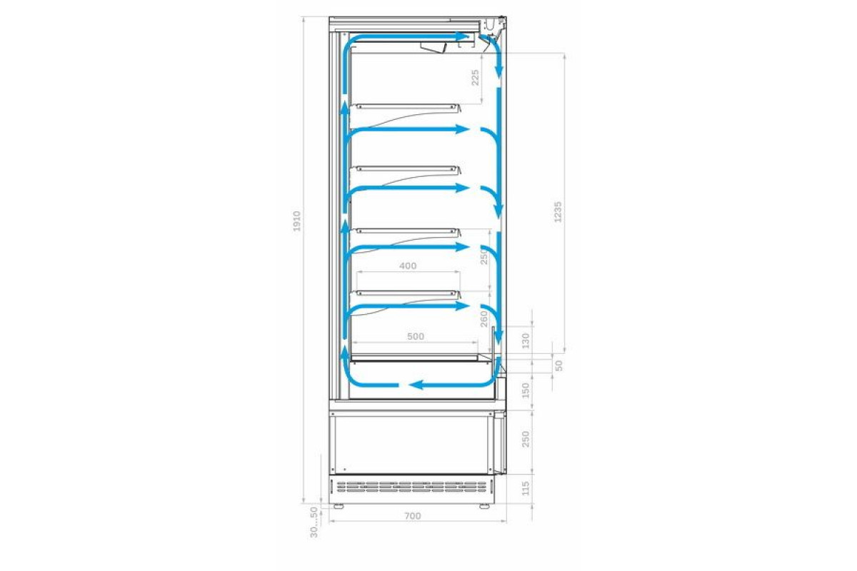 - Витрина должна быть установлена не ближе 2 м от отопительных приборов. Запрещается эксплуатация витрины при попадании на нее прямых солнечных лучей, воздушных потоков от кондиционеров, вентиляторов и обогревателей;