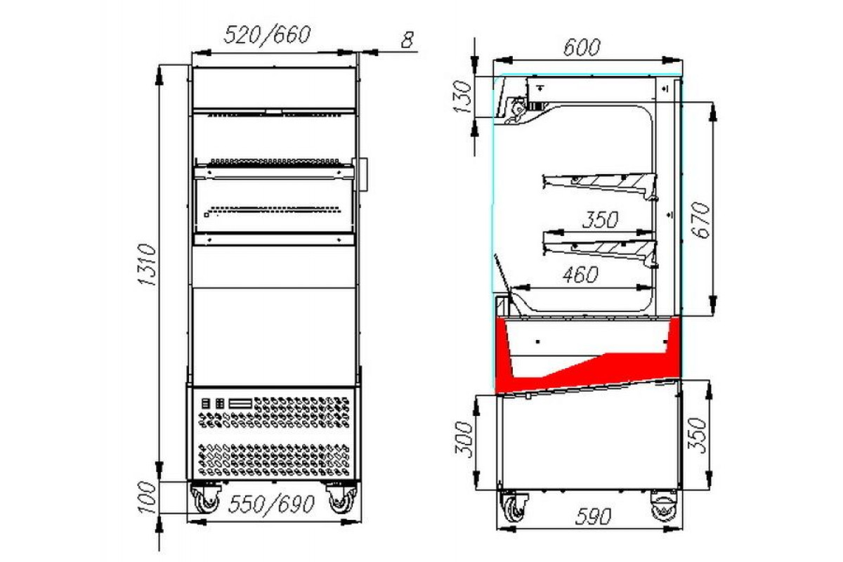 - Открытая выкладка – отсутствует фронтальное остекление, боковины из закаленного стекла со 100% обзором;