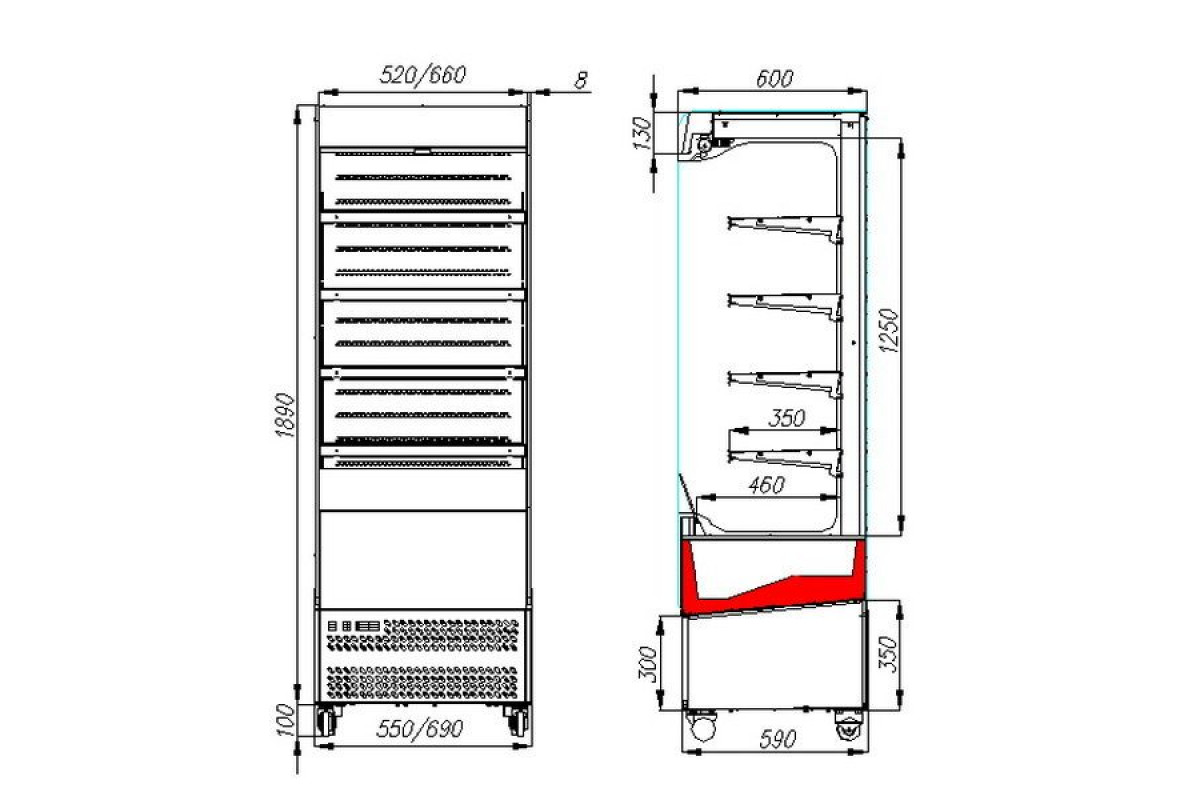 - Открытая выкладка – отсутствует фронтальное остекление, боковины из закаленного стекла со 100% обзором;