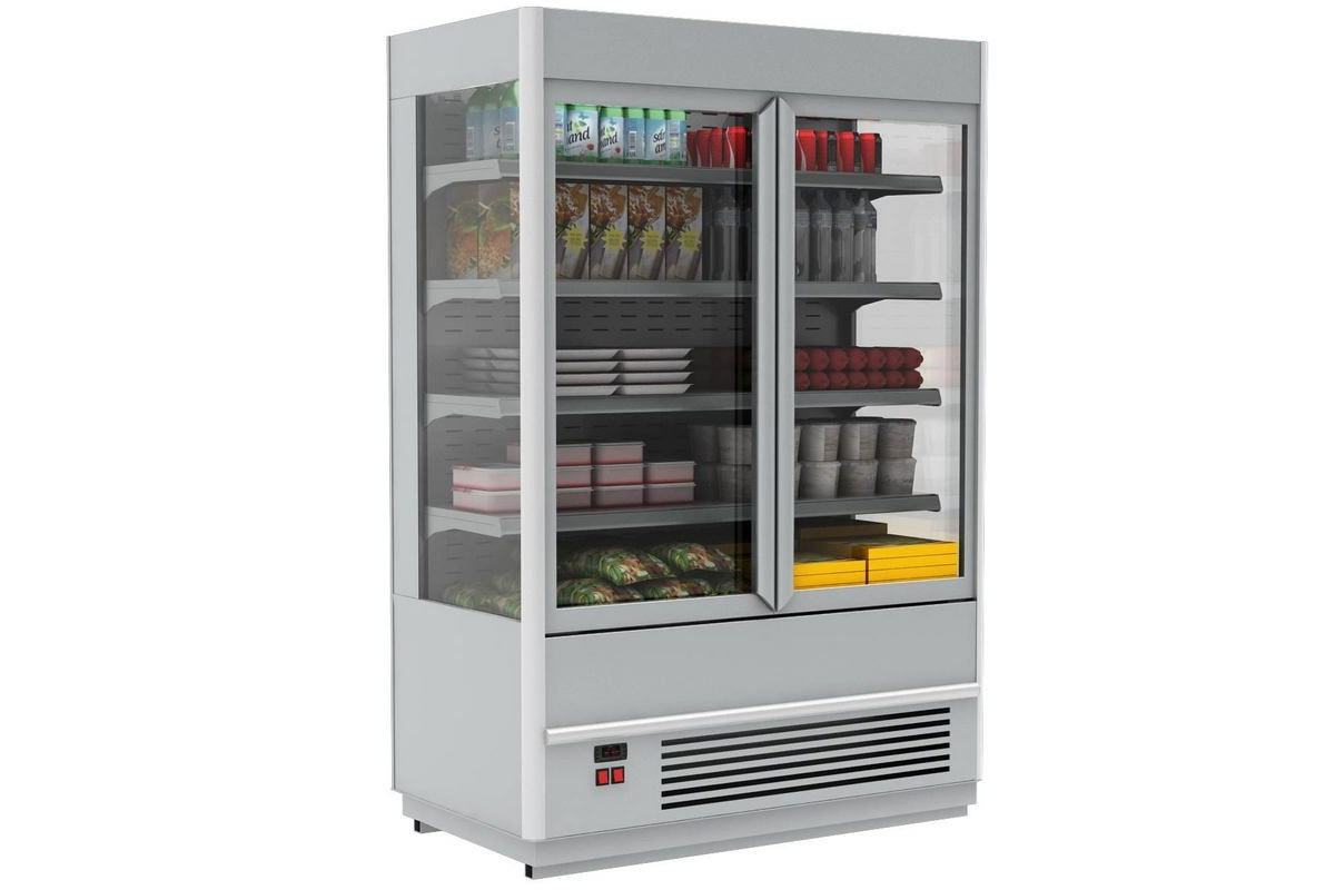 Холодильная горка гастрономическая Carboma FC20-08 VM 1,3-1 Light (фронт X0) (9006-9005 цвет серо-черный)