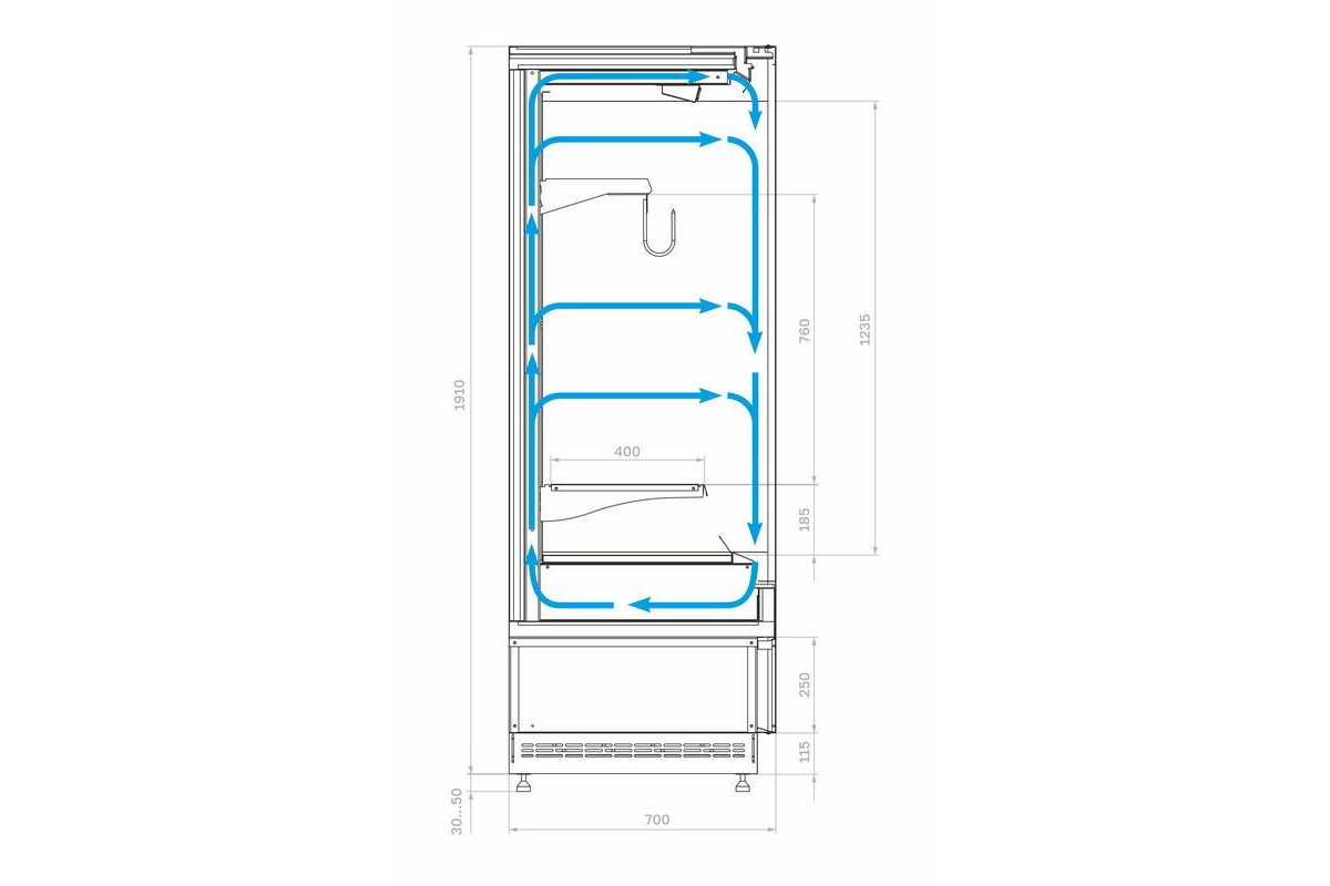 - Стеклянные двери без рамок, сделанные по технологии FRAMELESS, обеспечивают широкий обзор и поддерживает оптимальные климатические условия для мясных продуктов;