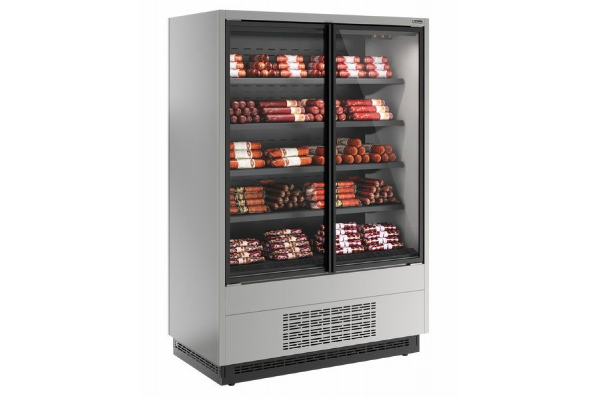 Холодильная горка универсальная Carboma FC20-07 VV 1,0-1 0300 STANDARD фронт X1 бок металл (версия 2.0) (9006-9005) предназначена для охлаждения, кратковременного хранения и демонстрации продуктов. Рекомендуется к применению в продовольственных магазинах, супермаркетах и на других предприятиях торговли, включая заведения с самообслуживанием. Максимальная экономия энергии и снижения теплопотерь за счёт стеклянных дверей.
