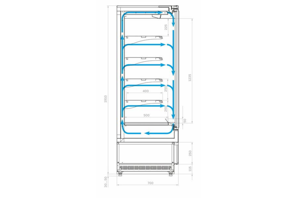 - Глубина выкладки базовой полки 500 мм + 4 рядя полок с глубиной выкладки 400 мм;