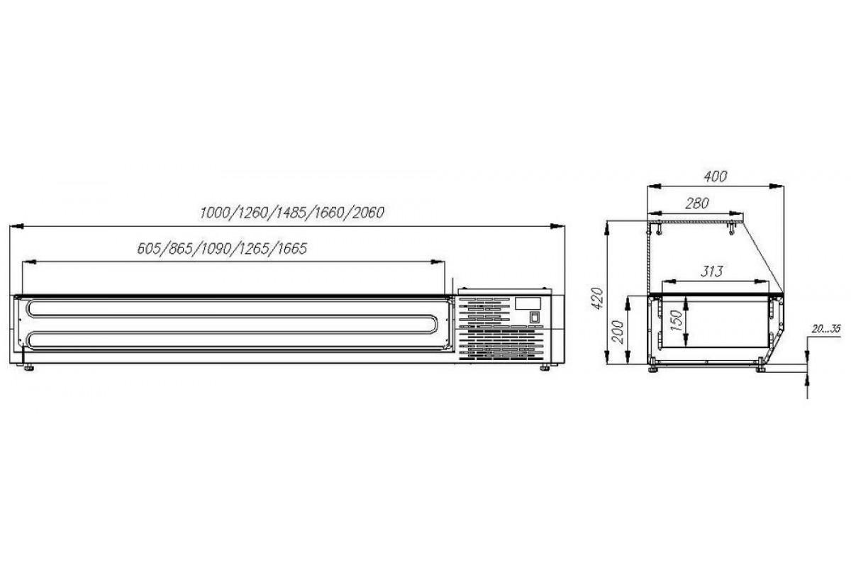Холодильная витрина для ингредиентов Carboma A40 SM 1,0-G 0430