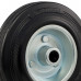 Колесо 4000-125 из черной литой резины диаметром 125 мм, под ось 12 мм. Центр из стального оцинкованного обода из штампованной стали. В оси колес роликовый подшипник.