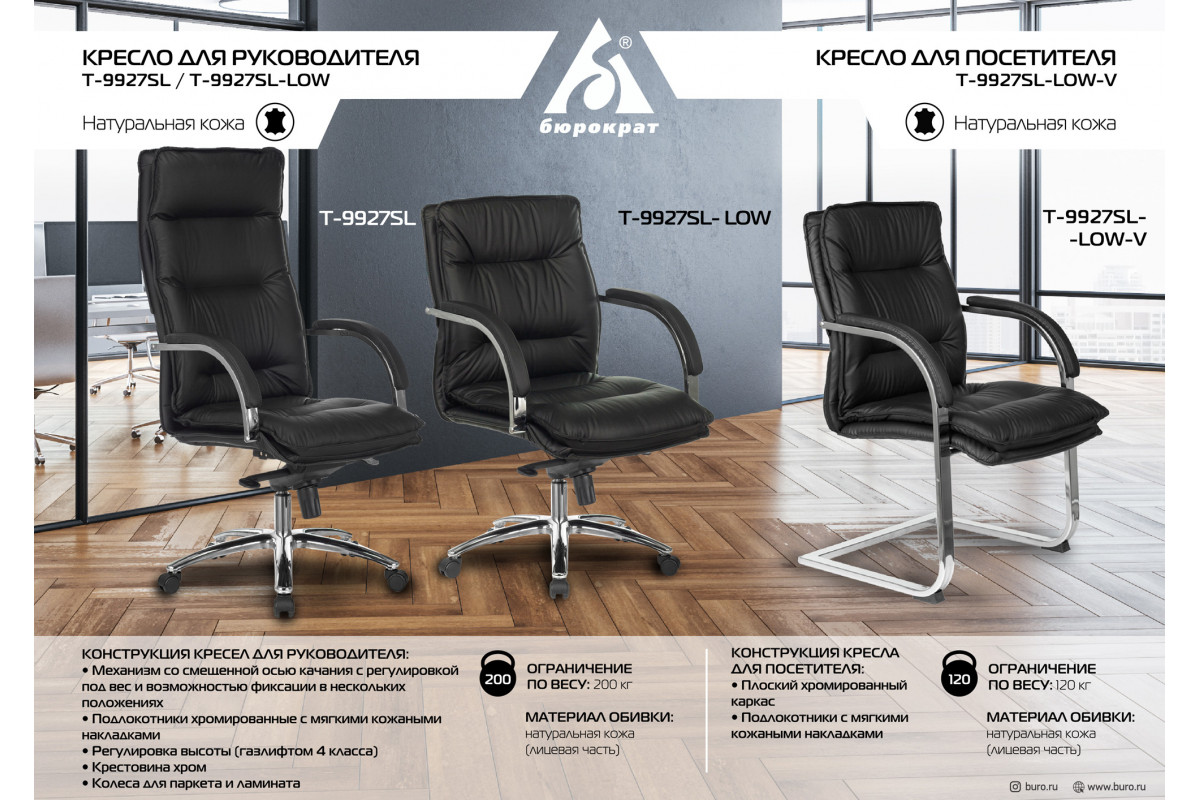Кресло Бюрократ T-9927SL-LOW-V черный кожа низк.спин. полозья металл хром