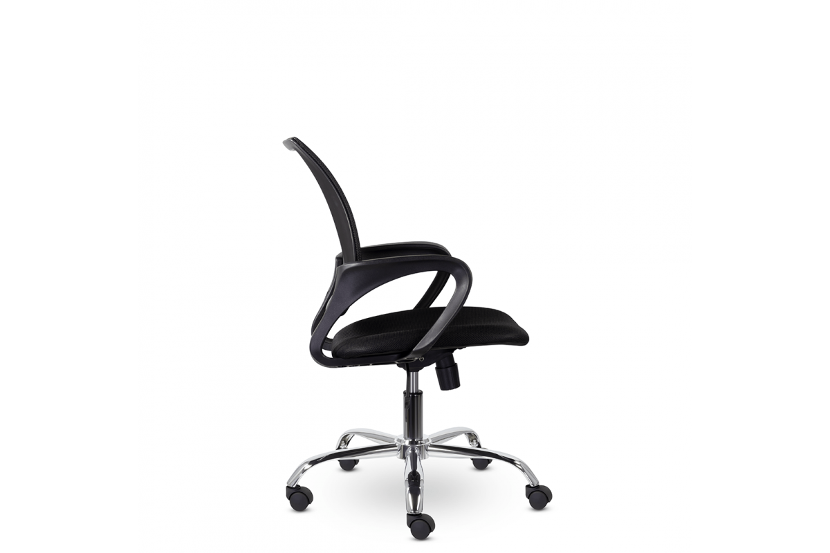 Современное компактное кресло для персонала будет хорошо смотреться в открытых офисах и коворкингах. Сетчатая спинка обеспечивает оптимальную циркуляцию воздуха, что немаловажно при длительной работе. Широкие пластиковые подлокотники являются частью каркаса