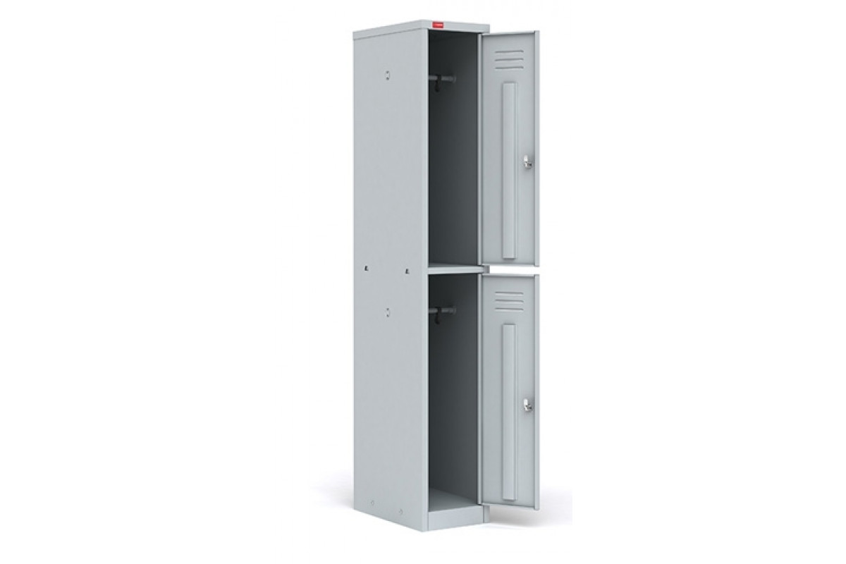 Шкаф разборный металлический односекционный с двумя отделениями предназначен для хранения сменной одежды. Каждое отделение снабжено дверью с индивидуальным врезным замком. В каждом отделении: перекладина для вешалки и крючки для одежды. Полимерное поро