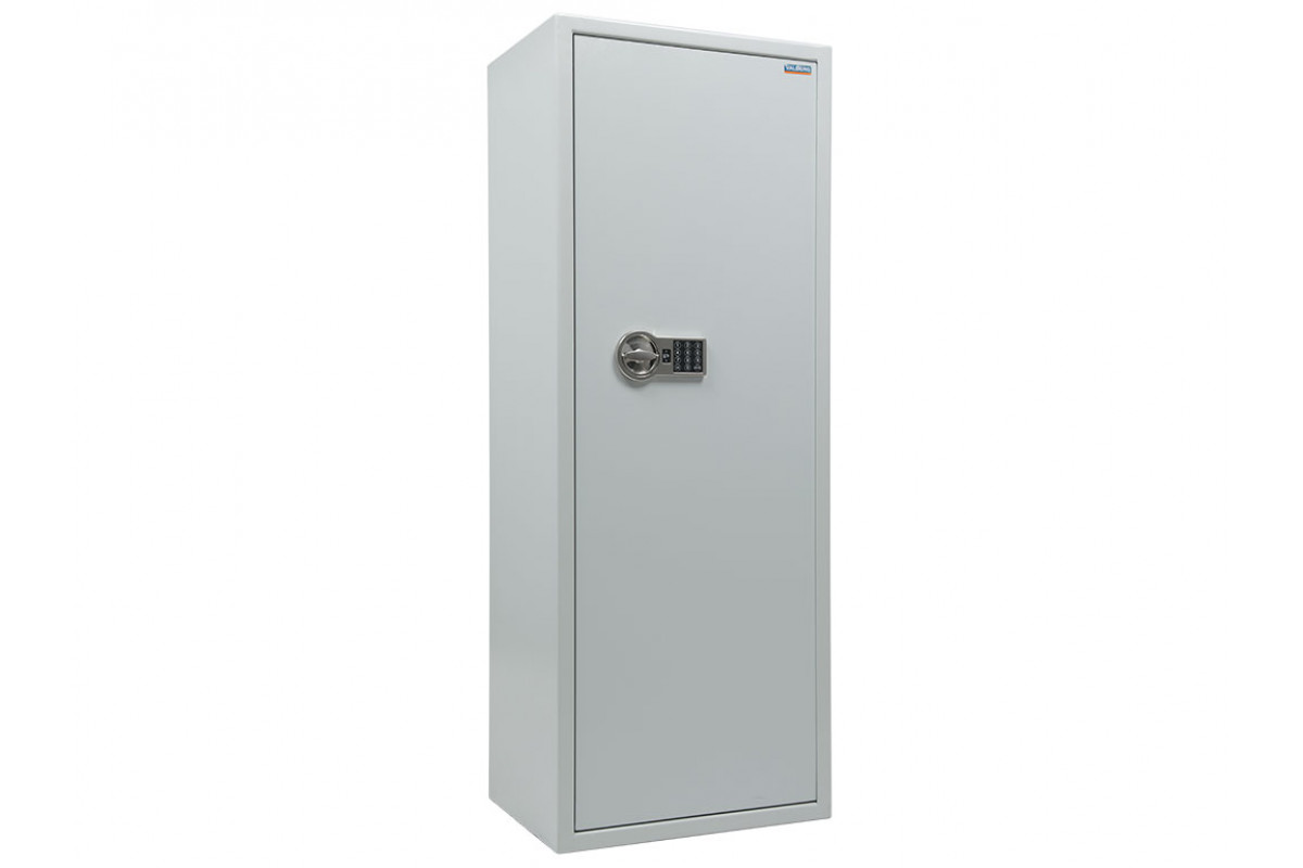 Предназначен для хранения огнестрельного оружия. Сейфы соответствуют требованиям ст.59 Постановления правительства РФ № 814 от 21 июля 1998 года «О мерах по регулированию гражданского и служебного оружия и патронов к нему на территории РФ». сертификат на устойчивость к взлому по EN 14450, класс S1. Выдан Польской сертификационной лабораторией IMP. оборудован патронным отделением (трейзер), запирающимся на ключ, полками и немецкими ложементами для ружей. комплектуется электронным замком PS-300 с клавиатурой E-01 ригельная система запирания. перфорация на внутренней стороне двери для съемных навесных элементов. Толщина металла корпуса и двери – 3 мм наличие анкерных отверстий для крепления сейфа к стене. максимальная высота ствола - 1440 мм