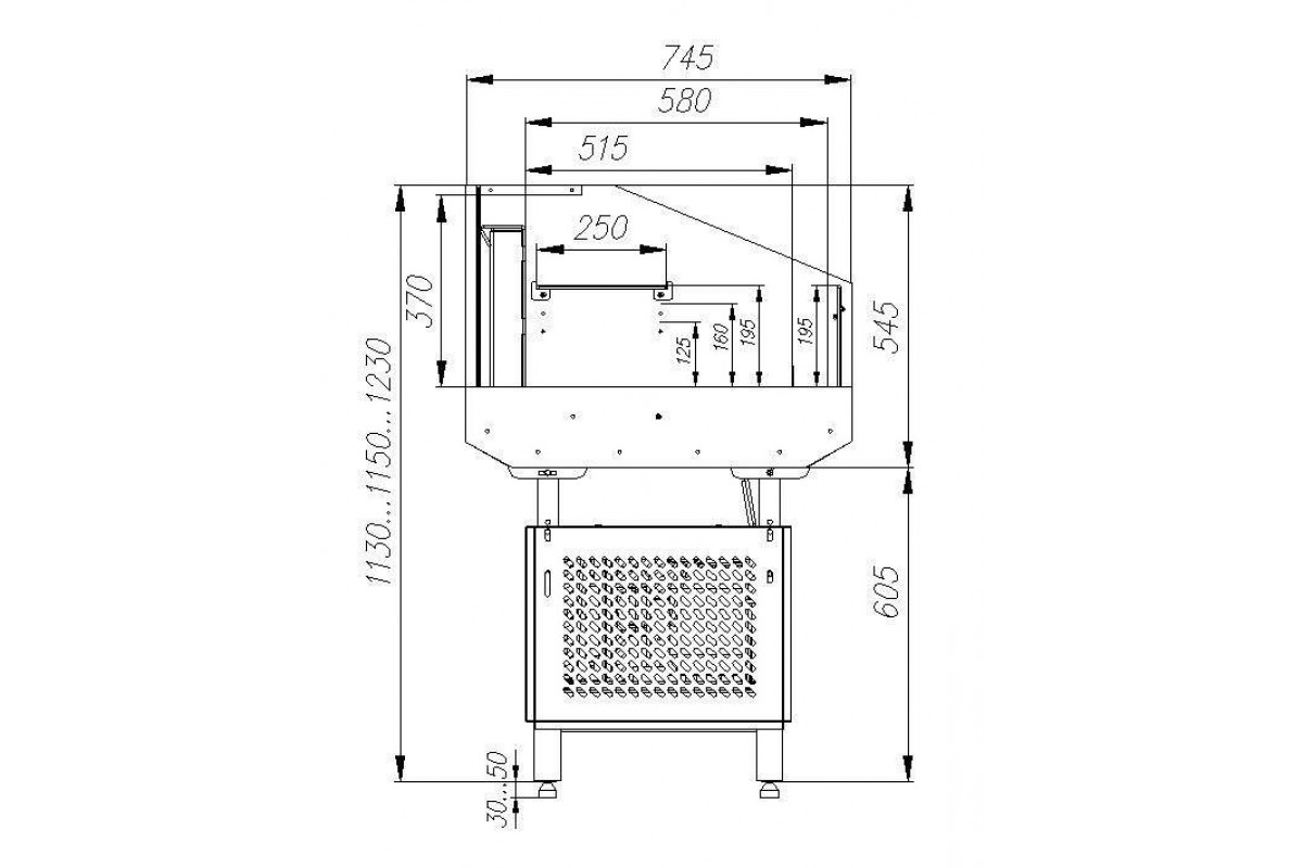 - 1 полка с возможностью установки на разной высоте. Глубина выкладки - 250 мм;