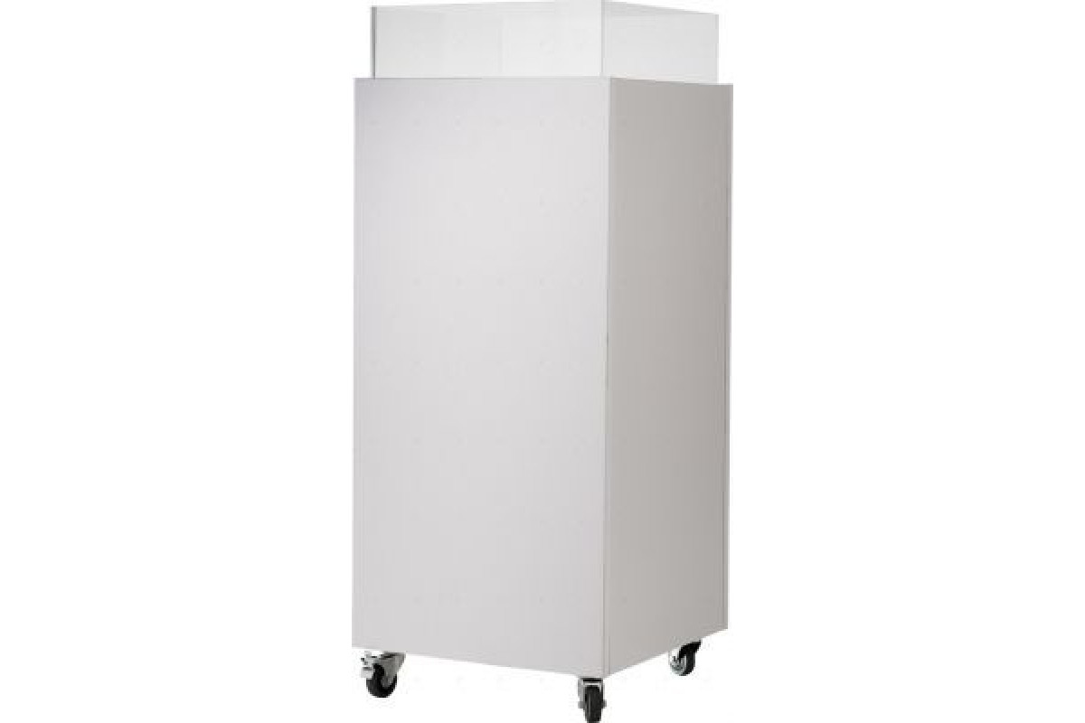 SBAdA-404080-К Торговый короб 400х400х800Н,ЛДСП16мм,бел.шагрень,с дном и рег.полк,акр.борт.с колесам в Барнауле