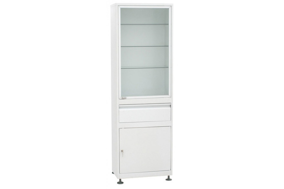 Шкаф 1-но створчатый стекло/металл ШМС-1-Т-Р-3 с трейзером с регулируемыми опорами с 3-мя ящиками