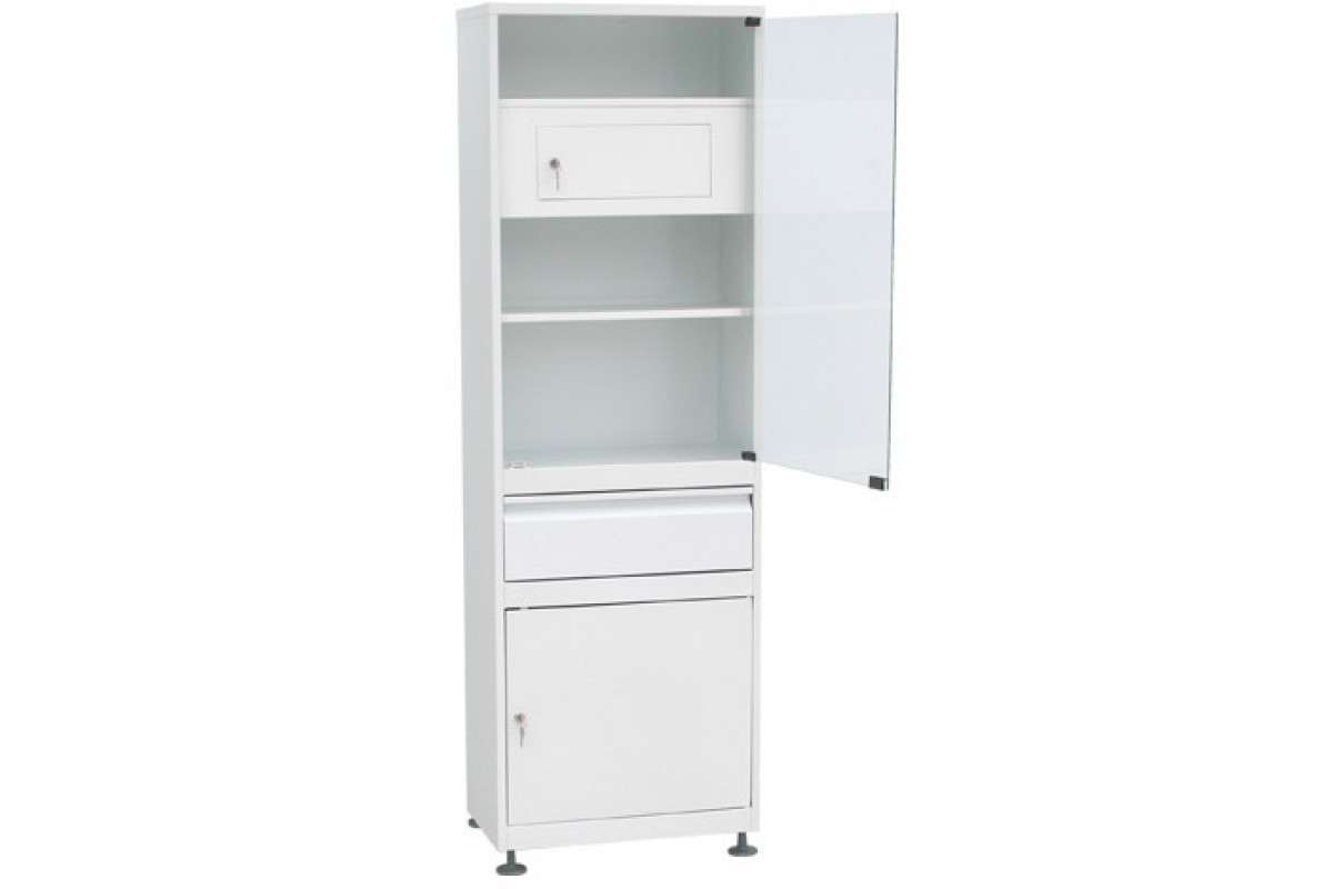Шкаф 1-но створчатый ШМС-1-Т-Р-1 стекло/металл с трейзером с рег опор с выдв ящ