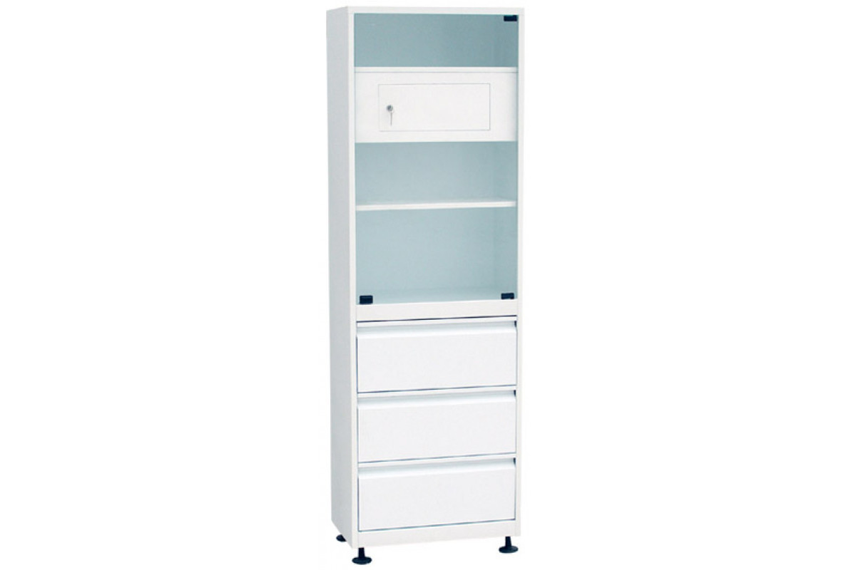 Шкаф 1-но створчатый стекло/металл ШМС-1-Т-Р-3 с трейзером с регулируемыми опорами с 3-мя ящиками