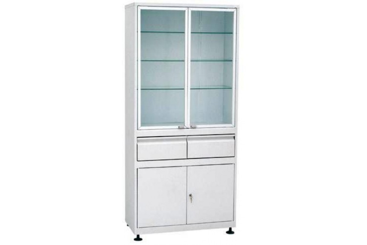 Шкаф 2-ух створчатый стекло/металл ШМС-2-Р-А-2 с регулируемыми опорами в алюм раме с выдв ящиком