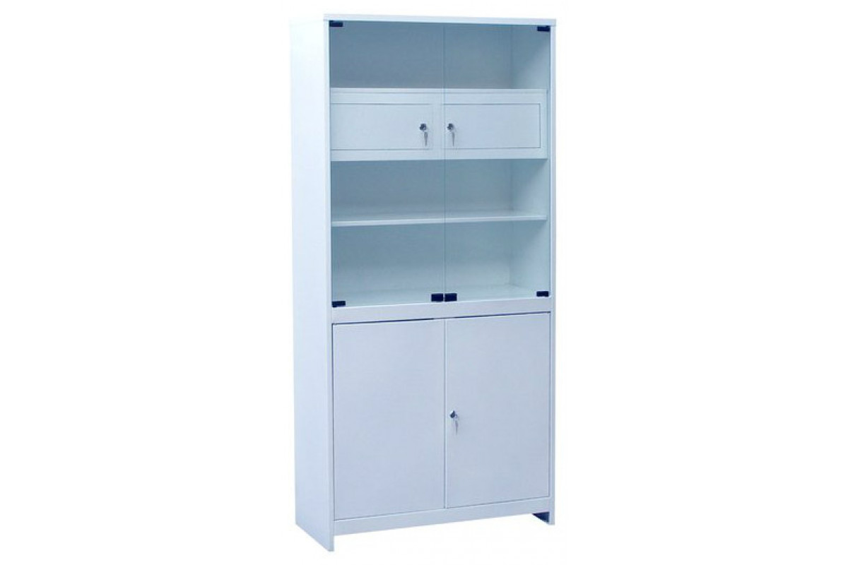 Шкаф 2-ух створчатый ШМС-2-А стекло/металл в алюминиевой раме