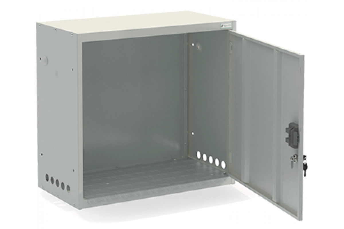 Шкафы серии ШГР изготавливаются из высококачественной конструкционной холоднокатаной стали. Металлический шкаф состоит из сборно-разборного корпуса и одной распашной двери. Корпус состоит из основания, усиленного оцинкованным настилом, крыши, двух боковых стенок и одной задней стенки. Сборка корпуса осуществляется на винтах и саморезах. Дополнительную жесткость основанию придает приварное ребро жесткости.Дверь шкафа имеет коробчатую конструкцию и так же усилена приварным, продольным ребром жесткости (одним или двумя в зависимости от модели шкафа). Ребро жесткости представляют собой сложно-катанный профиль, шириной 90 мм, высотой 15 мм, длина ребра жесткости зависит от модели шкафа.Каждая боковая стенка шкафа имеет одно специальное отверстие для газовой магистрали (шланга), диаметром 31.5 мм, расположенные в верхней части боковой стенке шкафа и пять отверстий для вентиляции, диаметром 31.5 мм, расположенные в нижней части боковой стенки. Нижние, вентиляционные отверстия нужны для предотвращения скоплений газа в случае утечки.В модели ШГР 27-2 дверь устанавливается на карточные петли, обеспечивающие открытие двери на 180°. Долговечность крепления дверей, 40000 циклов открываний, в соответствии с требованием ГОСТ 16371-93.Каждый шкаф серии ШГР оснащен одним почтовым замком повышенной секретности (не менее 2000 комбинаций) и одной пластиковой евро-ручкой для пожарного шкафа (замок для пожарного шкафа). Почтовые замки неподвижно и прочно фиксируются на дверях, в соответствии с требованием ГОСТ 16371-93, и обеспечивают легкое отпирание и запирание. При необходимости, металлический шкаф ШГР комплектуется петлей под навесной замок.Шкафы серии ШГР имеют атмосферостойкое полимерное покрытие, полученное при использовании термоотверждаемых порошковых красок на полиэфирной основе. Фактура покрытия мелкая шагрень. Цвет светло-серый RAL 7035. Полимерное покрытие устойчиво к перепадам температур и влаги. Допускается эксплуатация щитов в температурных режимах окружающего воздуха от «+40»°С до «- 60»°С, при влажности до 85%.Шкафы серии ШГР выпускаются с полным комплектом фурнитуры, необходимой для хранения баллонов. Крепежные элементы крепятся к задней стенке шкафа, в уже имеющиеся отверстия Ф 6,5 мм, с помощью болтов М 6х16 и гайки М 6.В комплект фурнитуры входят самоклеющаяся наклейка «Осторожно Газ», размером 90х100 мм и 2 пластиковые заглушки, диаметром 32 мм.
