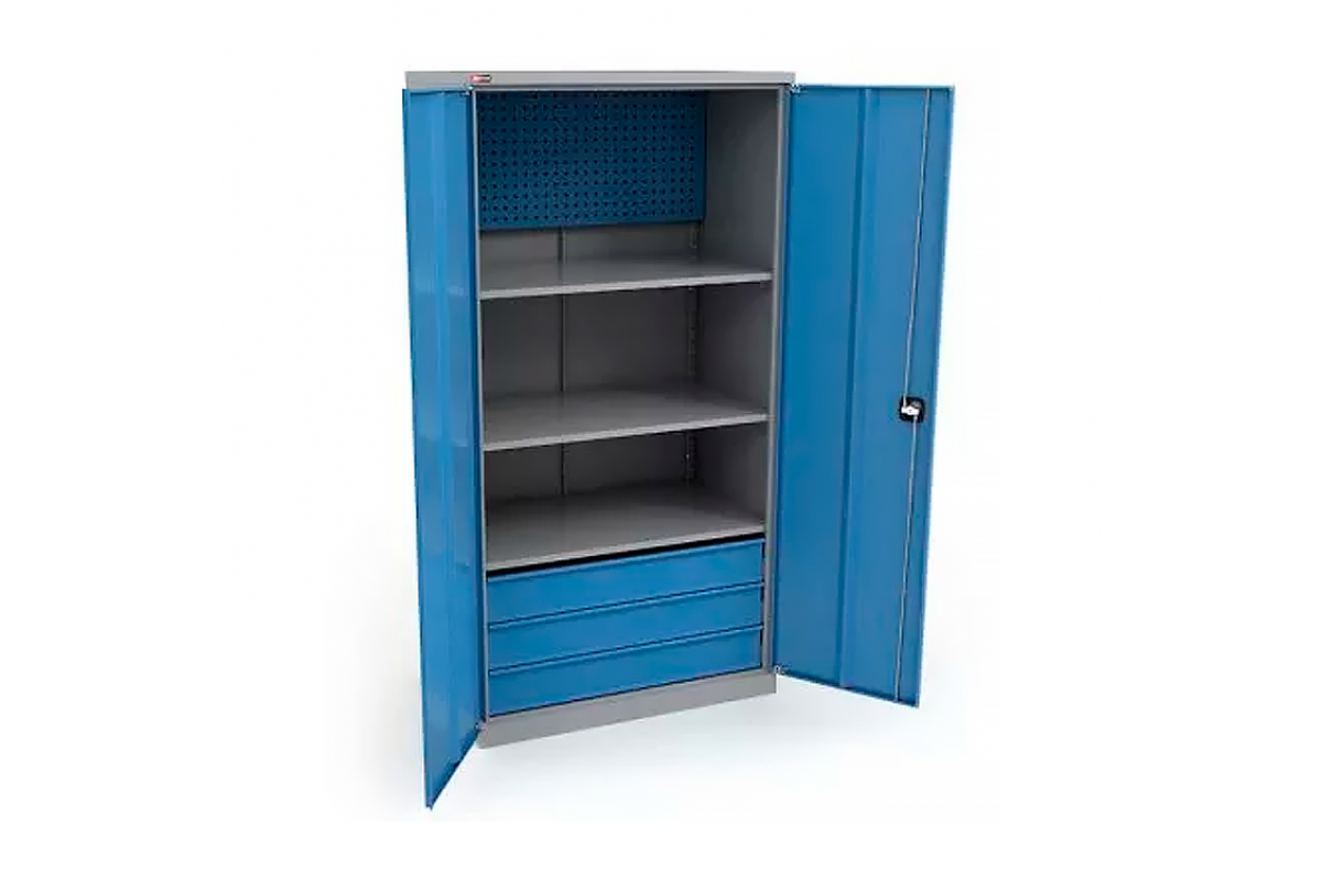 Цвет: корпус, аксессуары — серый RAL 7038, дверцы, ящики и экраны — синий RAL 5012