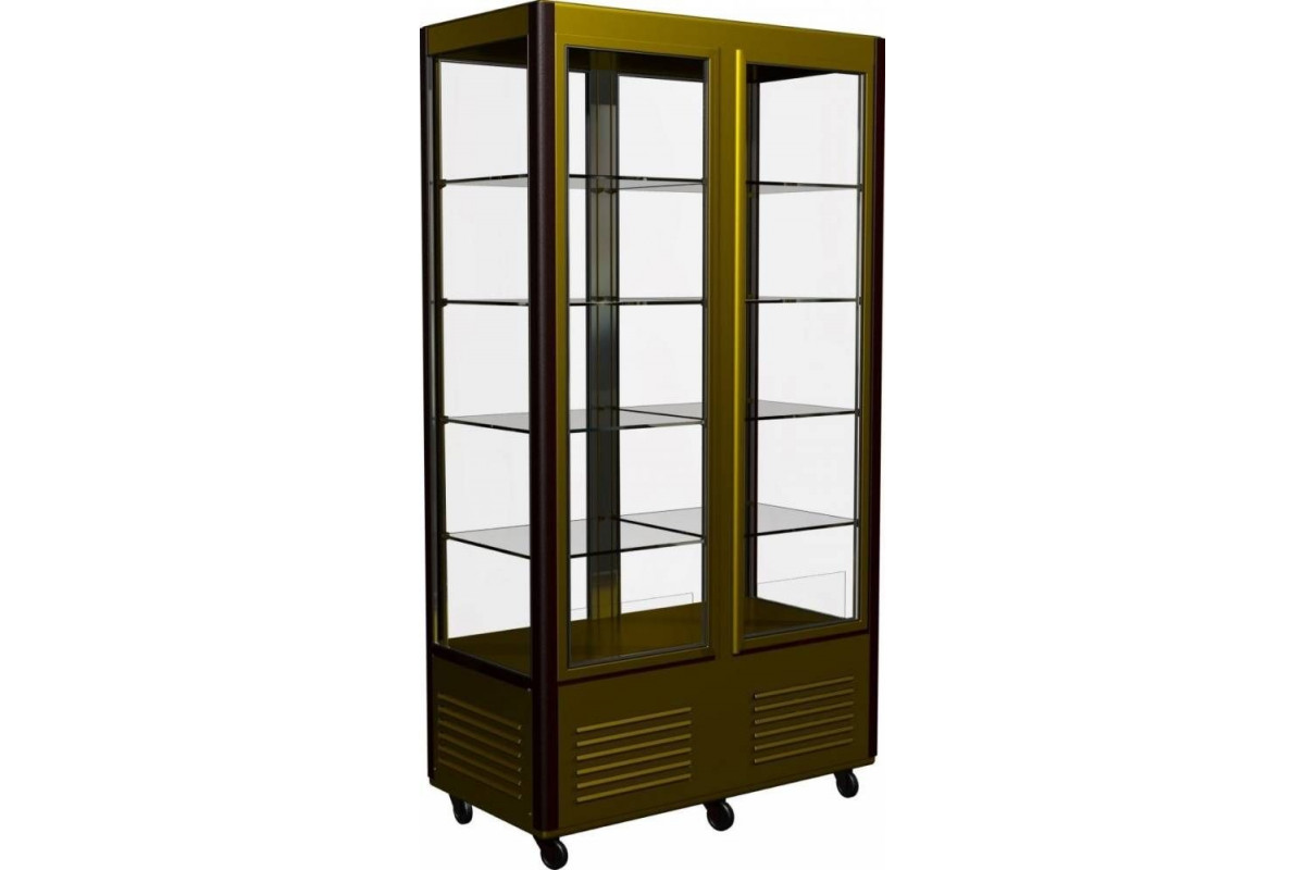 Шкаф кондитерский Carboma D4 VM 800-1 (R800C Сarboma Люкс) (0109-0102 (коричн-золот) 4 дв,стекл полк) предназначен для демонстрации кондитерских изделий, аппетитных сэндвичей и бутербродов, выпечки, пиццы и деликатесов в кафе, магазинах, барах и ресторанах. Стеклопакеты обеспечивают хорошую теплоизоляцию и обзор внутреннего объема со всех сторон.