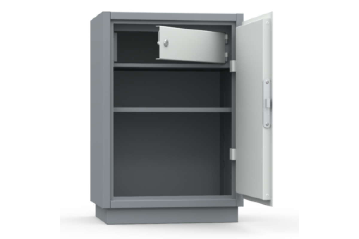 Съёмная полка позволяет хранить крупногабаритные предметы. Дверь шкафа имеет усиленную конструкцию. Безопасность содержимого обеспечивают замок сувальдного типа (3 ключа в комплекте) и почтовый ключевой замок «ЦЕРЕРА» (2 ключа в комплекте).