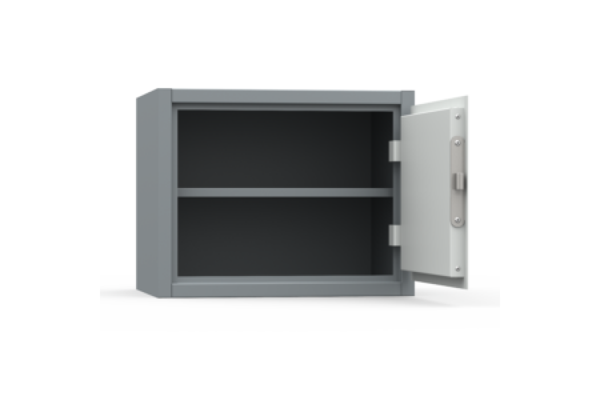 Съёмная полка позволяют хранить крупногабаритные предметы. Дверь шкафа имеет усиленную конструкцию. Безопасность содержимого обеспечивают замок сувальдного типа (3 ключа в комплекте).