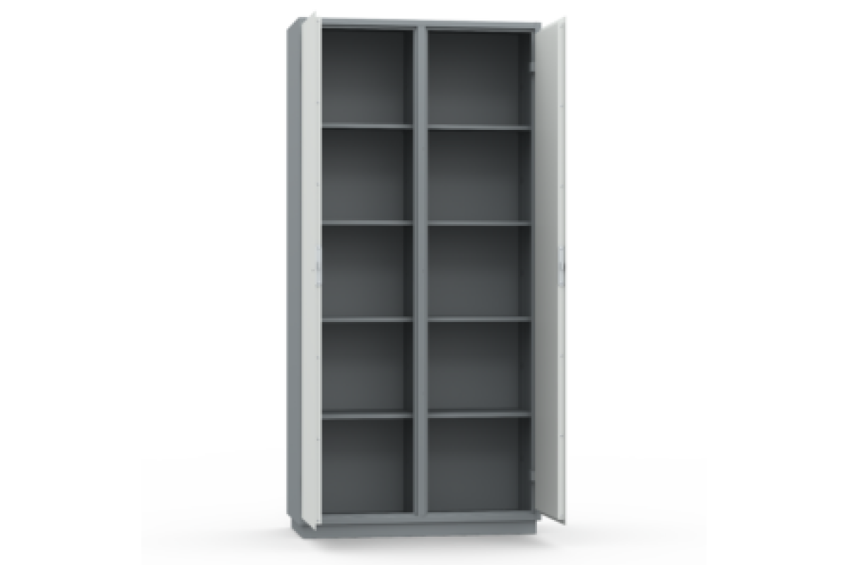 Двухсекционный шкаф имеет вертикальную перегородку, что позволяет эксплуатировать шкаф разным сотрудникам одновременно.