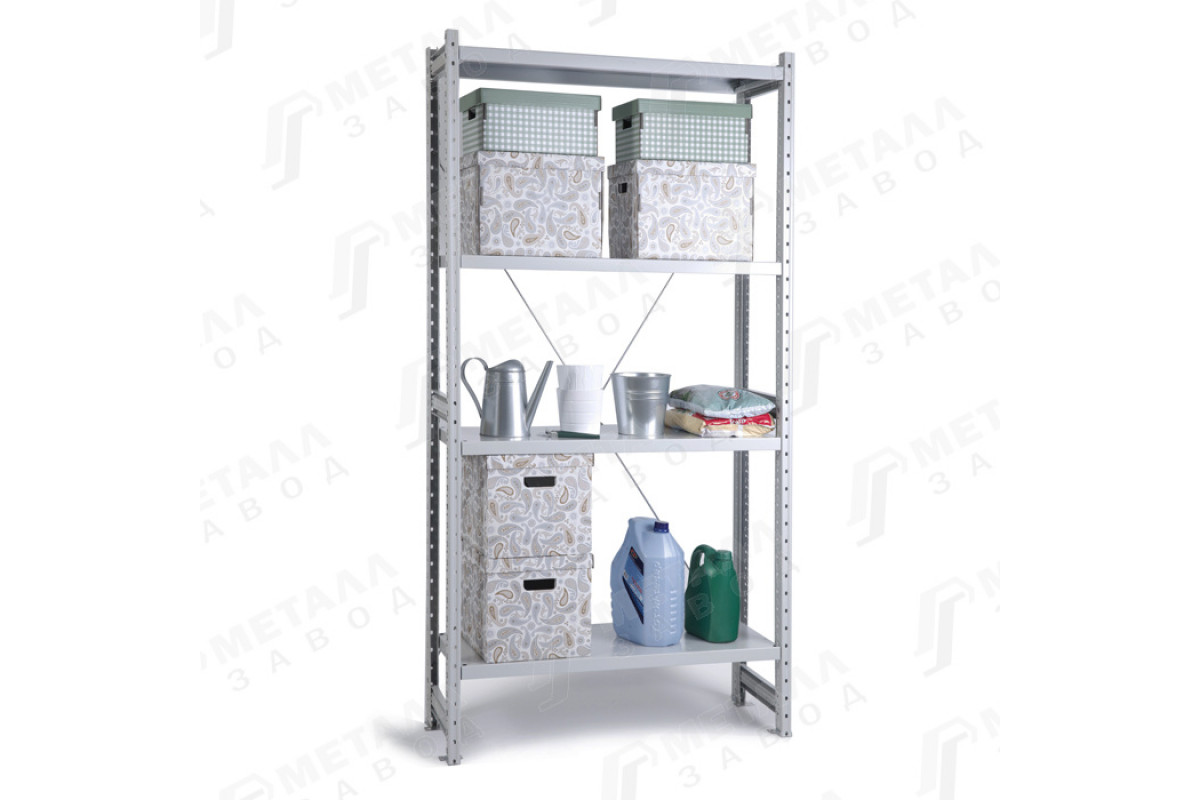 - Все элементы стеллажа окрашены полимерной (порошковой) краской RAL 7035 светло-серого цвета.