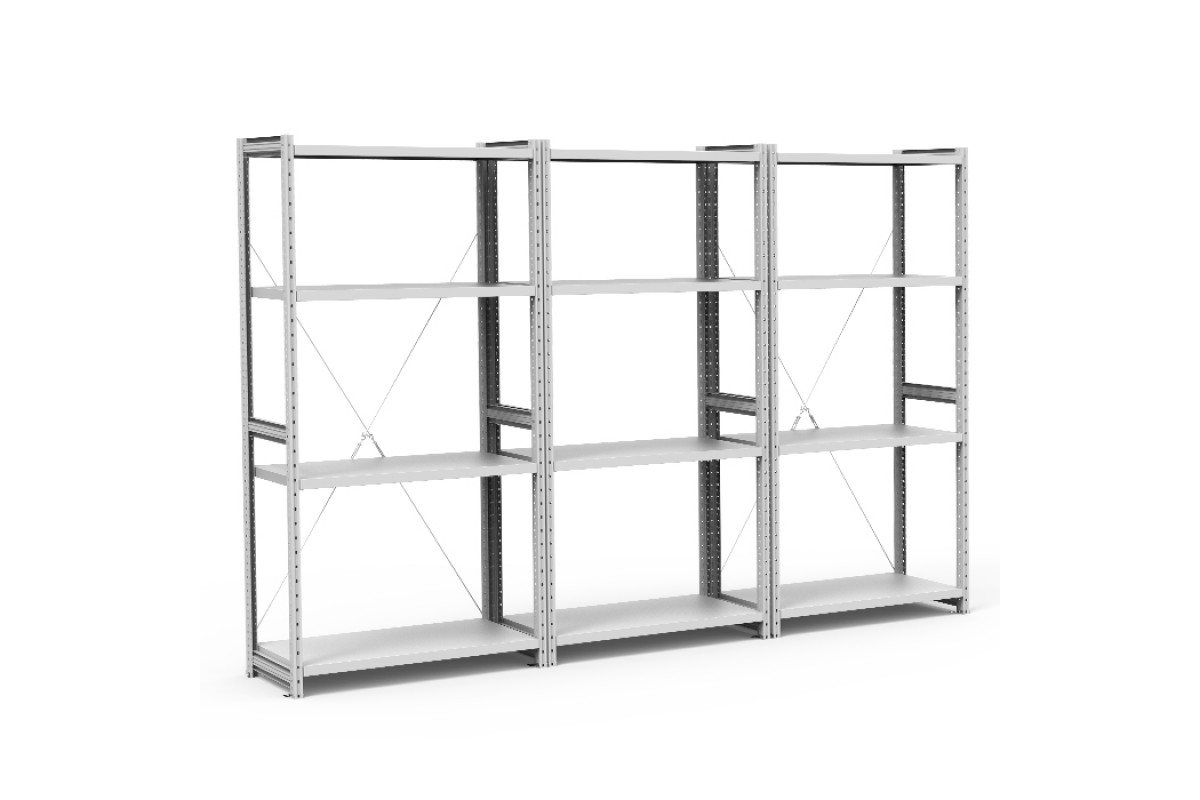 • Дополнительная секция может быть присоединена к основной как слева, так и справа, создавая таким образом многосекционный стеллаж.