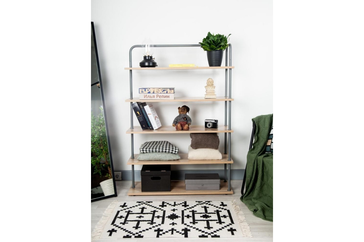 Стеллаж Отрада широкий с 5 полками из ЛДСП, 900х330х1260Н, серый/дуб в Барнауле