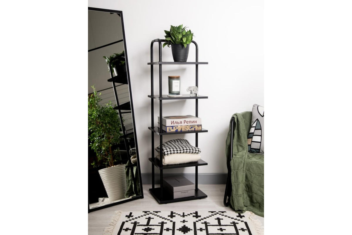 Стеллаж Отрада узкий с 5 полками из ЛДСП, 400х330х1260Н, черный/черный в Барнауле