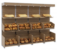 Стеллаж пристенный Carboma S6-20 12 со сплошными деревянными полками предназначен для демонстрации хлеба, батонов и других хлебобулочных изделий в магазинах, супермаркетах, кофейнях, а также на предприятиях общественного питания и торговли. Модель оснащена 2 полками и нейтральной тумбой. Изделие выполнено из МДФ, плинтуса - из нержавеющей стали, стойки обшиты выкрашенной в серый цвет сталью.