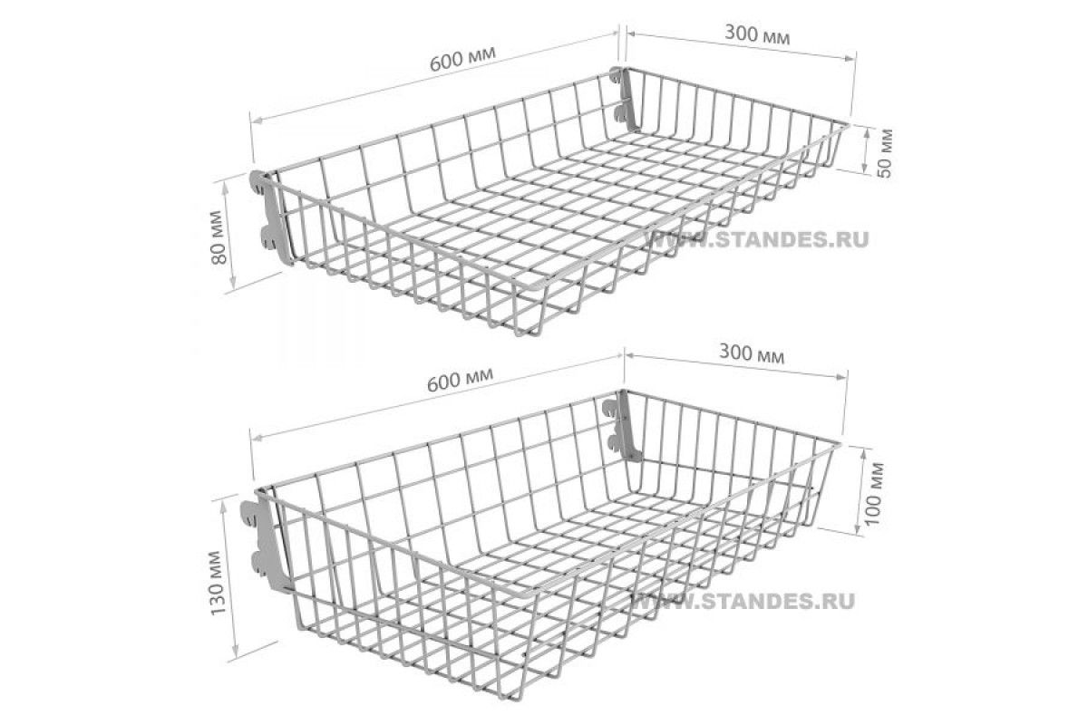 Шаг перемещения полок и аксессуаров по высоте - 50 мм. Дополнительно - металлические полки, корзины.