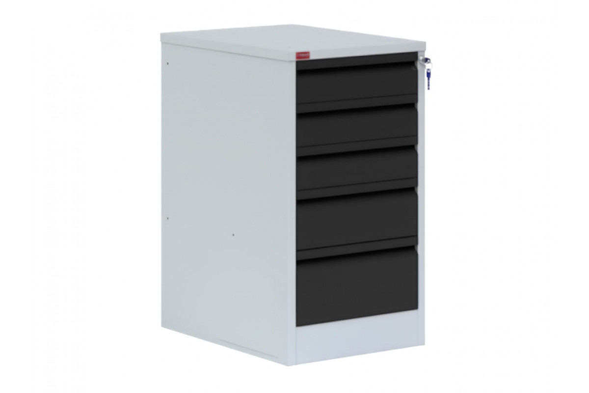 Тумба для металлического верстака может использоваться как с верстаком, так и как отдельный элемент металлического мебели. Состоит из 5-ти выдвижных ящиков, запирающихся на общий замок. Нагрузка на ящик до 30 кг. Варианты покрытия: СИНИЙ - Полимерное п