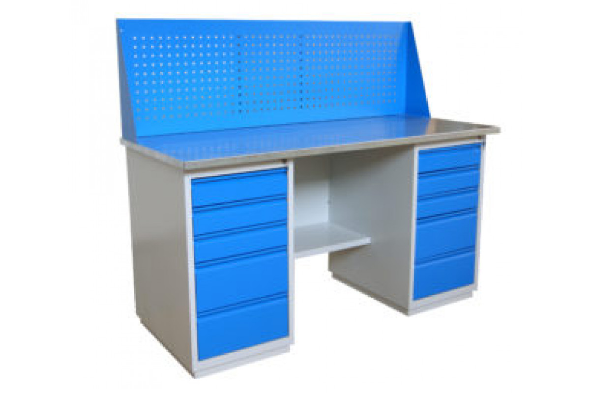 Верстак изготовлен из листовой холоднокатаной стали толщиной не менее 1 мм.