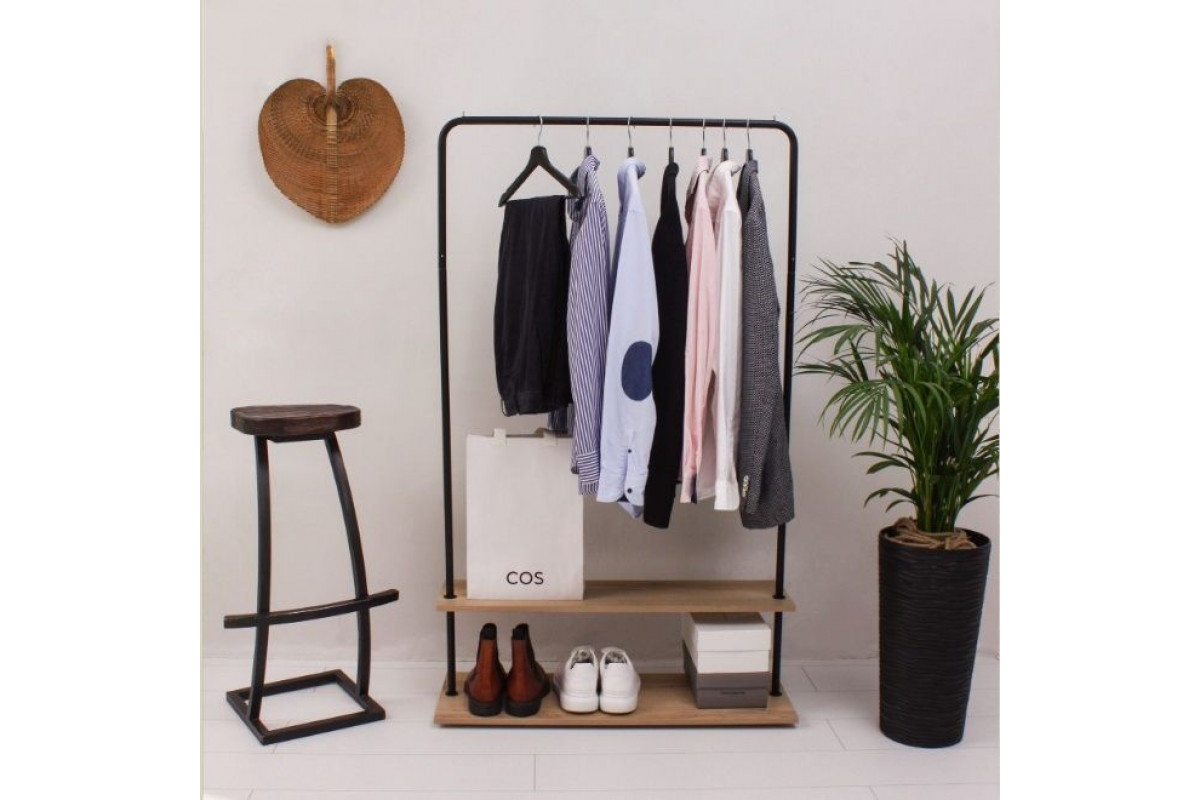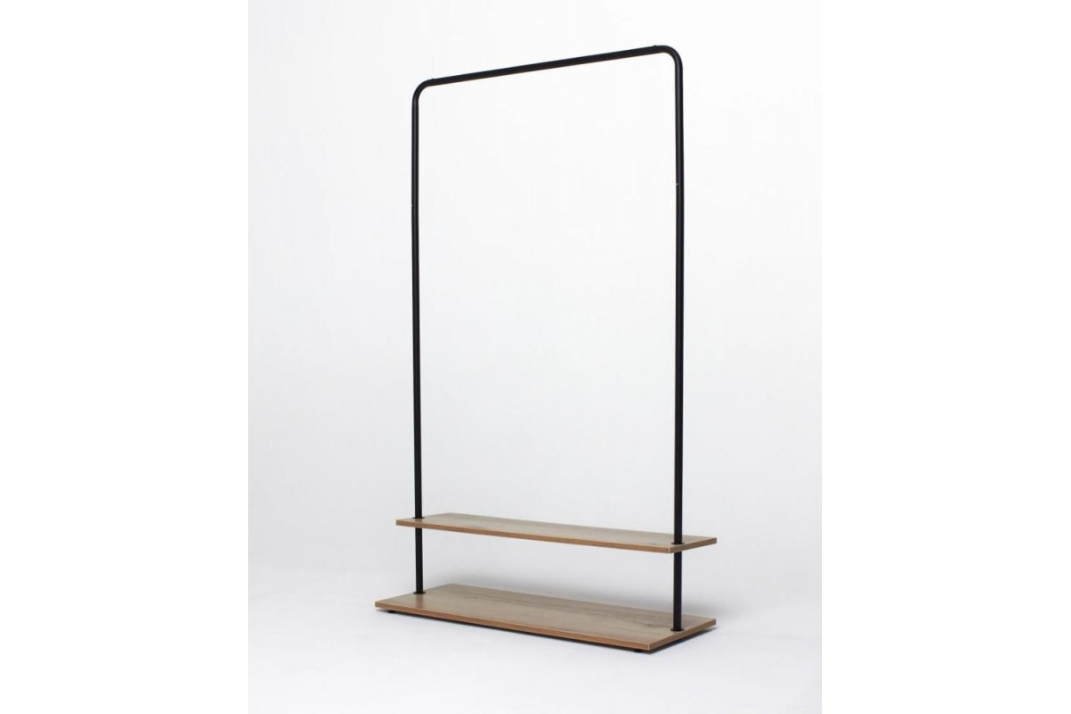 Вешалка напольная Отрада с полкой для обуви из ЛДСП, 910х330х1500Н, черная/дуб