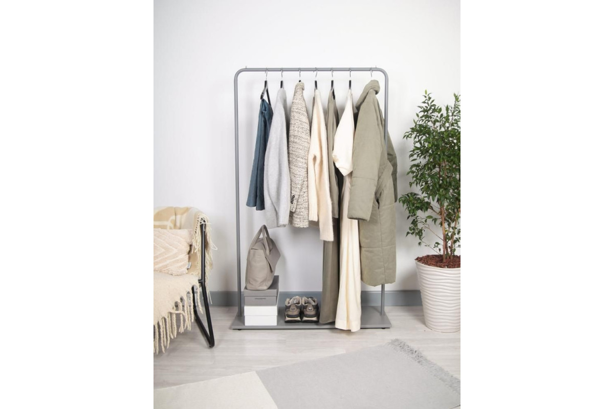 Вешалка напольная Отрада с полкой для обуви из ЛДСП, 920х330х1500H, серый/серый