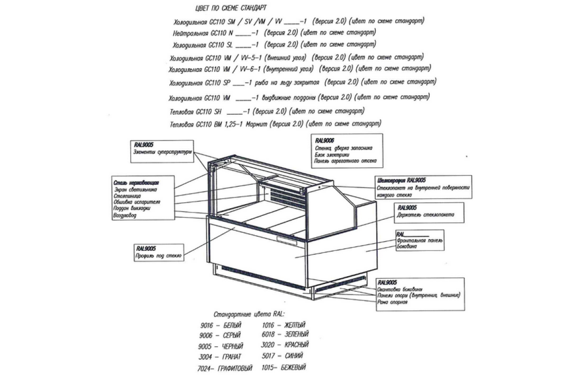 Витрина для рыбы Carboma GC110 SP 0,94-1 (без боковин) (версия 2.0) цвет по схеме стандарт - оборудование из серии BAVARIA 4, предназначенное для охлаждения, кратковременного хранения и демонстрации разнообразных морепродуктов. Оснащена статической системой охлаждения. Рекомендуется к применению в магазинах, супермаркетах и на других предприятиях общественного питания и торговли.