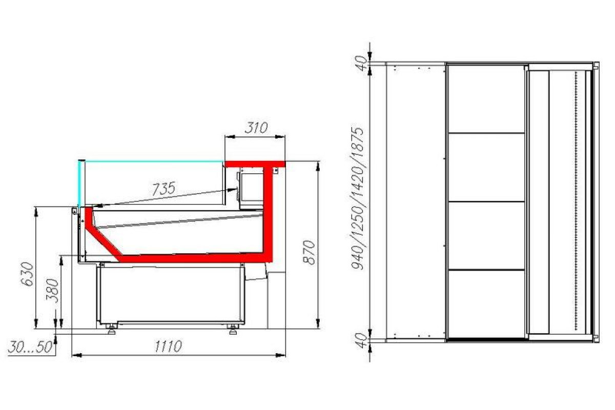Витрина для рыбы Carboma GC110 SP 1,25-2 (с боковинами, рыба на льду) (0011-9006)