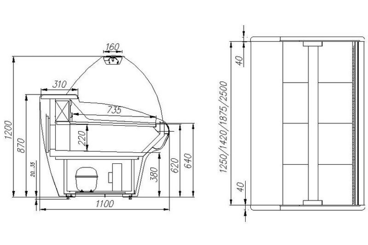 Витрина холодильная Carboma G110 SM 1,5-1 с боковинами (ВХС-1,5ш Carboma G110), 9006 предназначена для демонстрации, продажи и кратковременного хранения предварительно охлажденной мясной и рыбной гастрономии, сыров, молочной продукции и другой продукции. Классический дизайн и оптимальные эргономические показатели. Только энергосберегающие технологии (низкоэмиссионное стекло, LED-освещение).