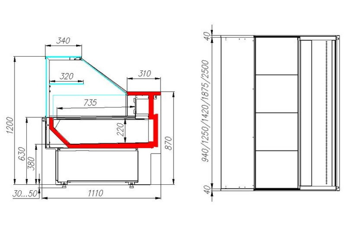 - Глубина выкладки 735 мм + одна неохлаждаемая полка 320 мм;