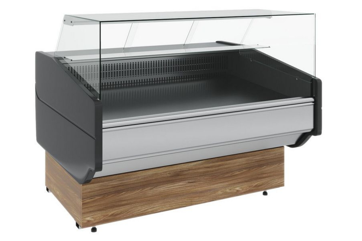 Витрина холодильная Carboma GC120 VM 1,25-1 KombiLux (динамика, цвет по схеме) идеальна для презентации и продажи мяса, птицы, колбасных, молочных и других гастрономических изделий. Эргономичный кубический дизайн с откидным фронтальным стеклом. Превосходная обзорность. Прямое фронтальное стекло можно открывать на 30°.